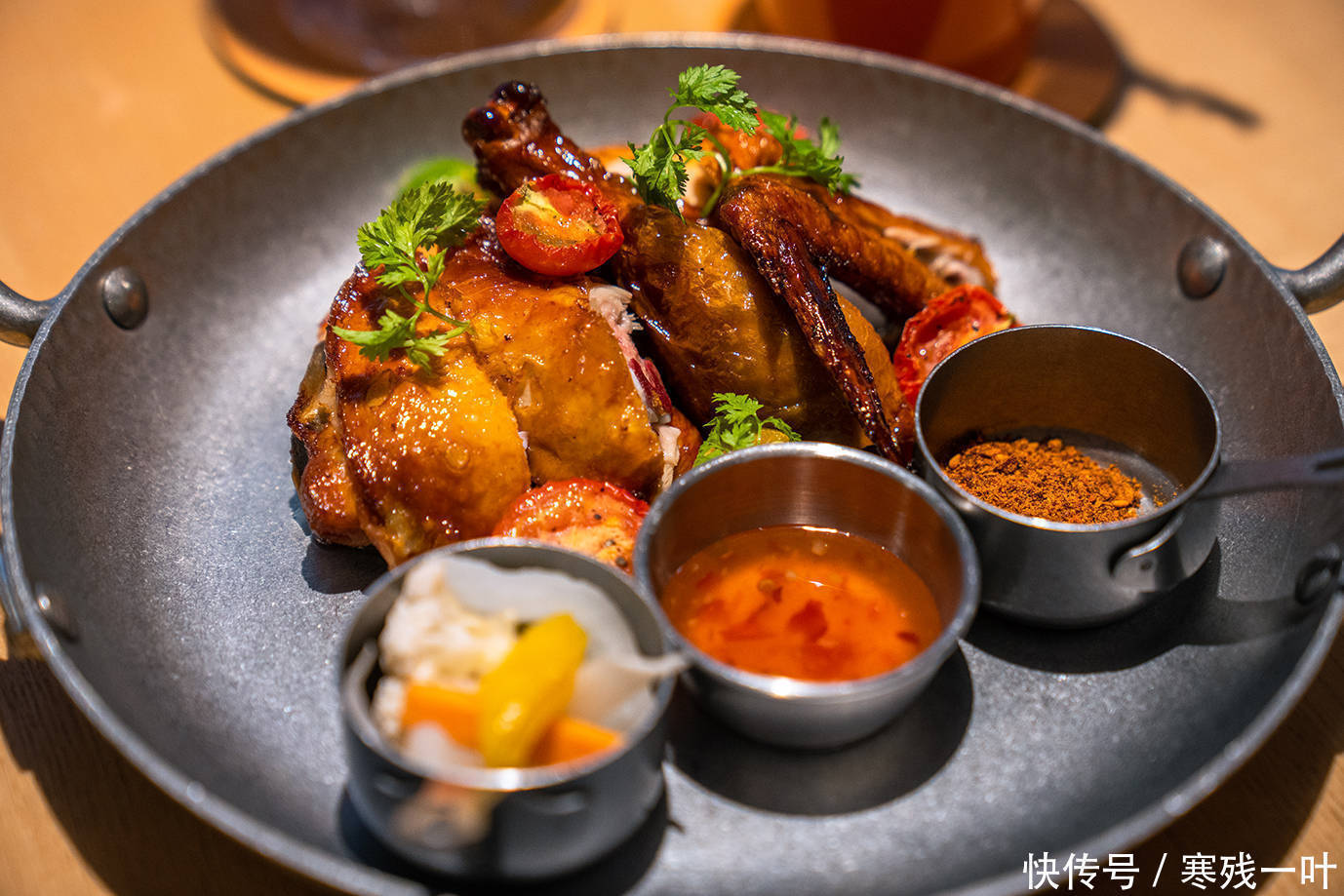 南法香草烤鸡配甜椒酱。外焦里嫩的鸡肉,搭配秘制的酱料,让东说念主对烤鸡有了新的坚毅,正本还有这么的滋味,值得保举!