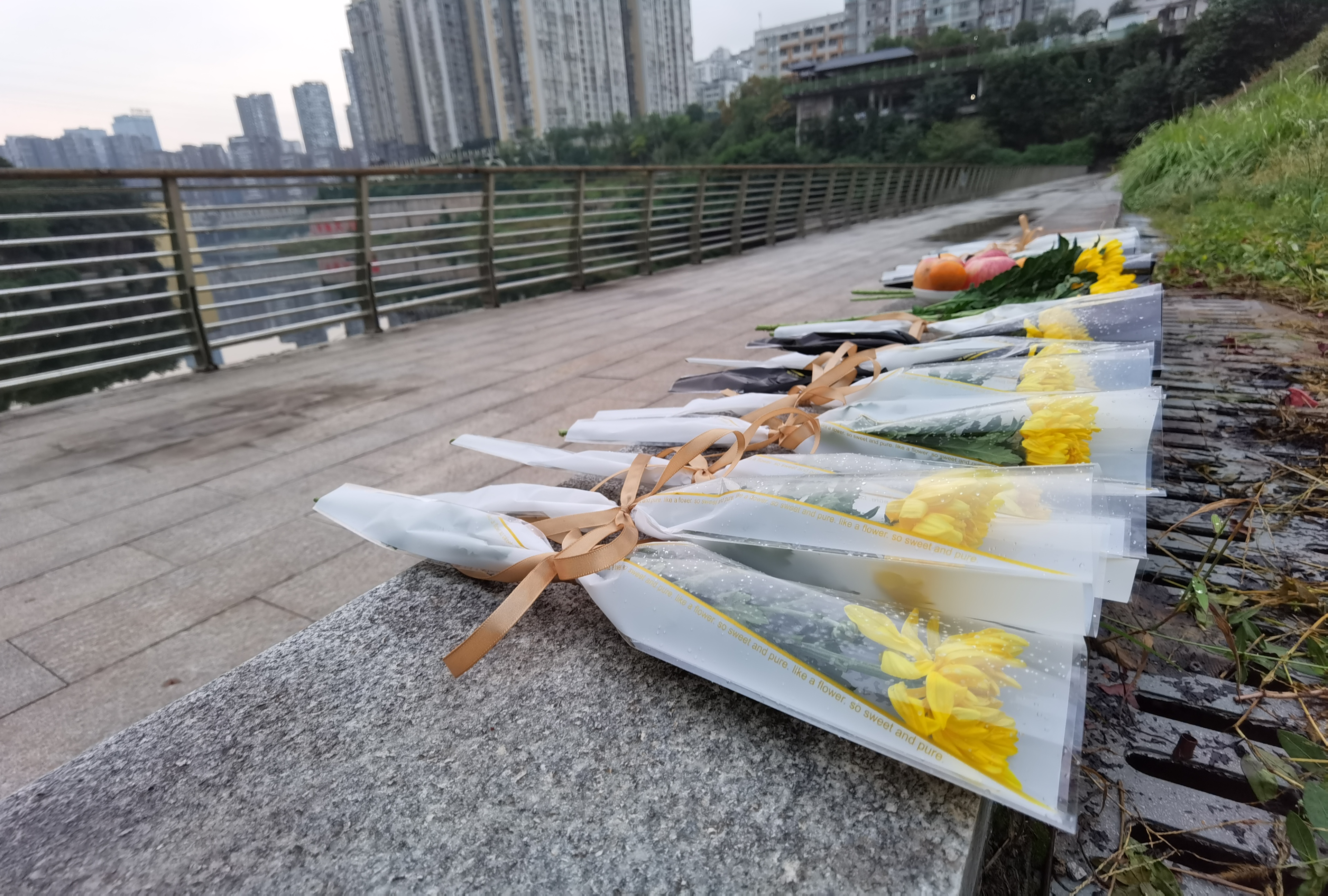 市民在事发现场摆放的生果开yun体育网。曾业 摄