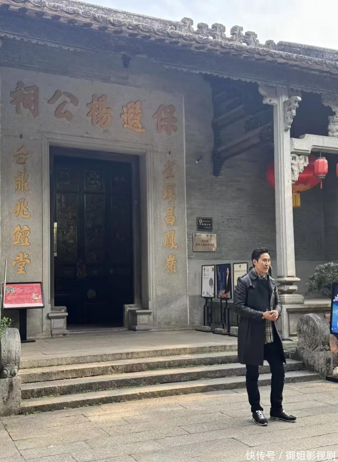 他还去了着名的保遐杨公祠,在门口拍了系念照,摆出了酷酷的造型,不祥超模雷同。