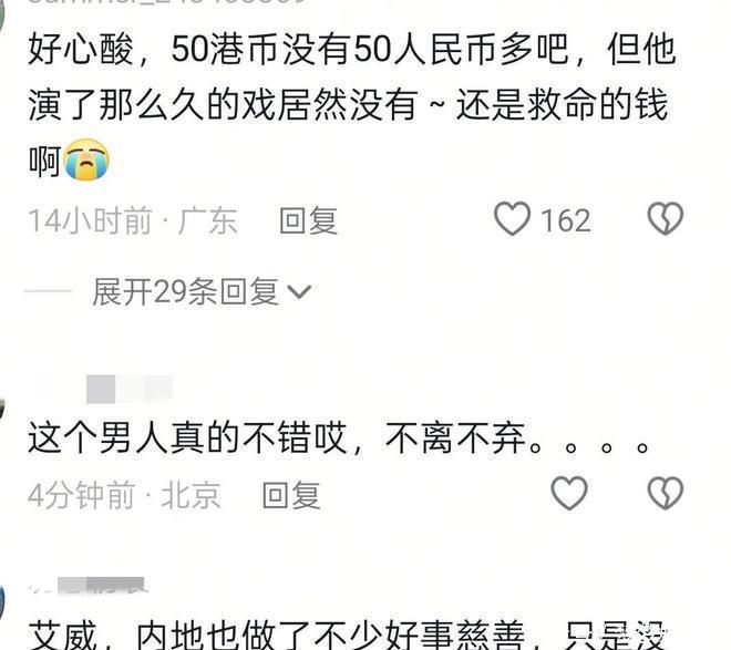 好心酸,50港币莫得50东说念主民币多吧?但他演了那么久的戏竟然莫得,仍是救命的钱啊。