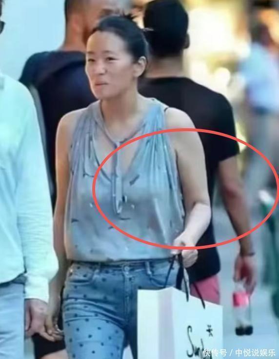 像片里的巩俐,看起来如实老了,肤色黑了不少,颧骨显得很是了得,面颊也有些凹下,身体不再是牵记中那般紧致,小肚子微微隆起,大腿也粗壮了些,透着一股藏不住的发福感。