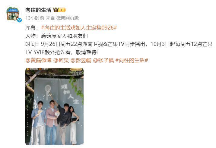 《向往的生涯》第八季官宣啦!据官方发布,这一季的主视觉海报与气势皆尘埃落定——常驻嘉宾为黄磊、何炅、彭昱畅、张子枫,海报主题定为“戏如东谈主生”。