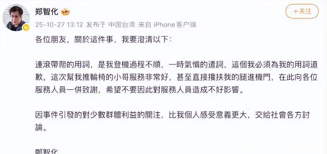 10月26日,郑智化再次发了条微博,详备说了他在大陆机场遇到的多样不便捷,甚而提到这些事情让他一度萌发了“引退”的念头。这一说法,把个东说念主的际遇升华成了对通盘这个词环境的质疑。