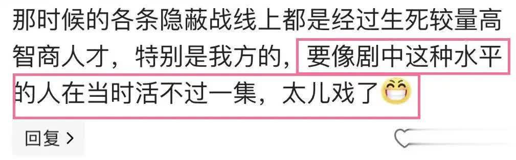 有谍战剧迷刀刀见血指出:“不了解真实的瞒哄阵线,只可胡编乱造,纰谬百出。”
