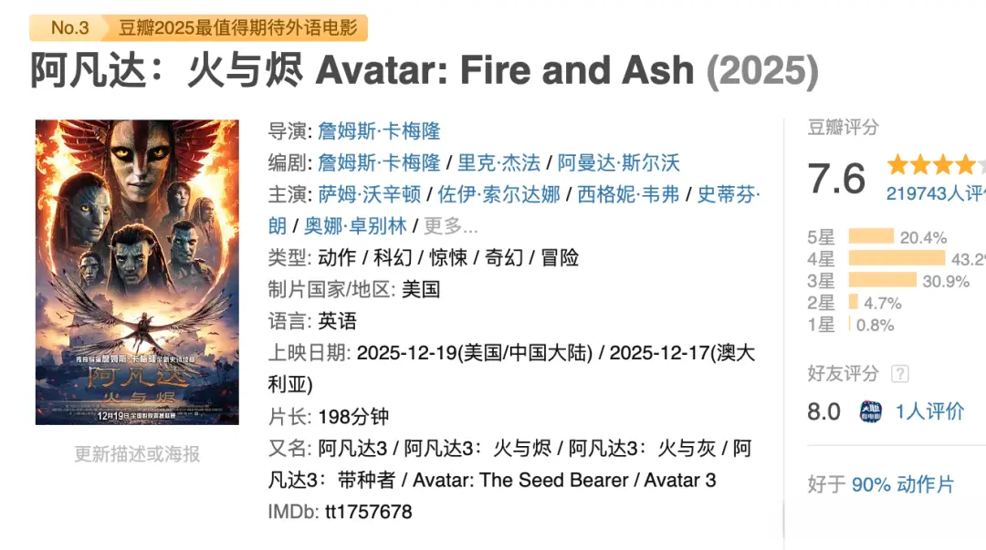 更病笃的是,关于影院来讲,排一场《阿凡达3》可以排两场其他的电影了,明明能赚更多的钱,为啥还要排《阿凡达3》呢,票价又莫得涨几许。