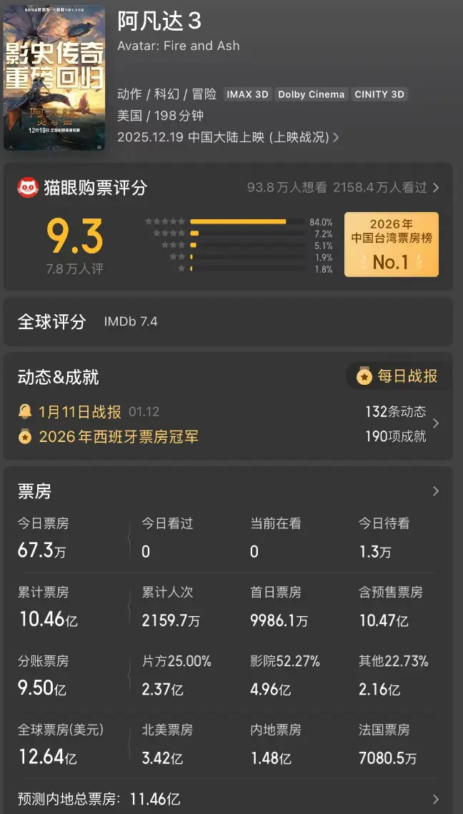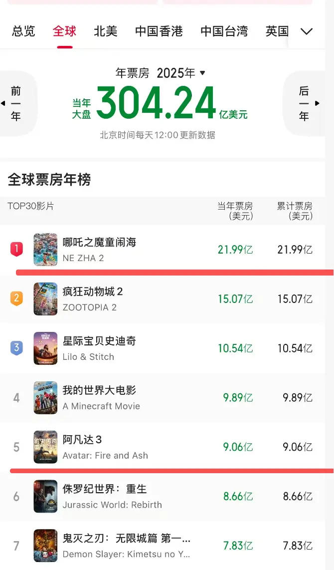 目下《阿凡达3》排在第四名,原来但愿2026年再冲一波,但很昭着,潜力不及,大略停留在17亿好意思元就可以了,距离《哪吒2》的差距,还有5亿好意思元的差距啊。