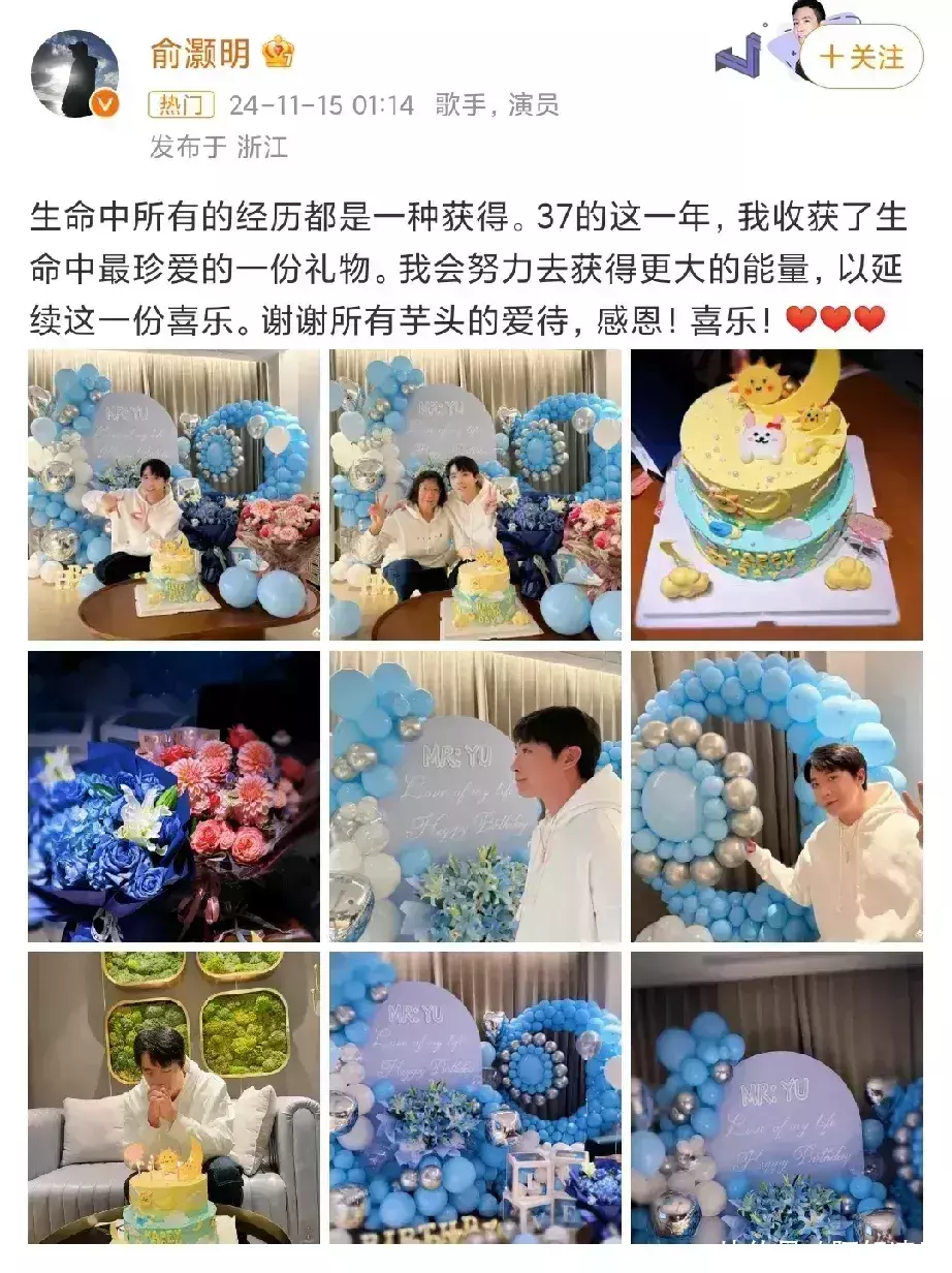 而俞灏明在11月15日凌晨还专门发文37岁的这一年,收成了东说念主生中最爱戴的礼物,会悉力去取得更大的能量,以延续这份慷慨!