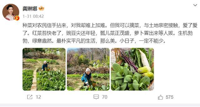 1月31日,她晒出了我方在闾里地里摘菜的像片,像片中的她笑貌满面,一稔朴素,小日子过得很安稳。