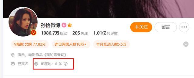 可知的是孙怡此次春节在山东,因为她的账号IP地址骄横在山东。