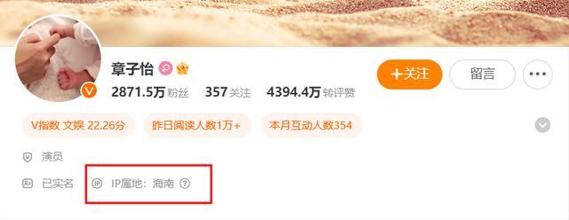 适度笔者发稿,章子怡的账号IP地址依旧在海南。