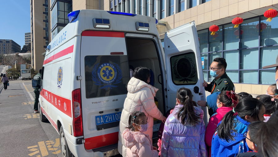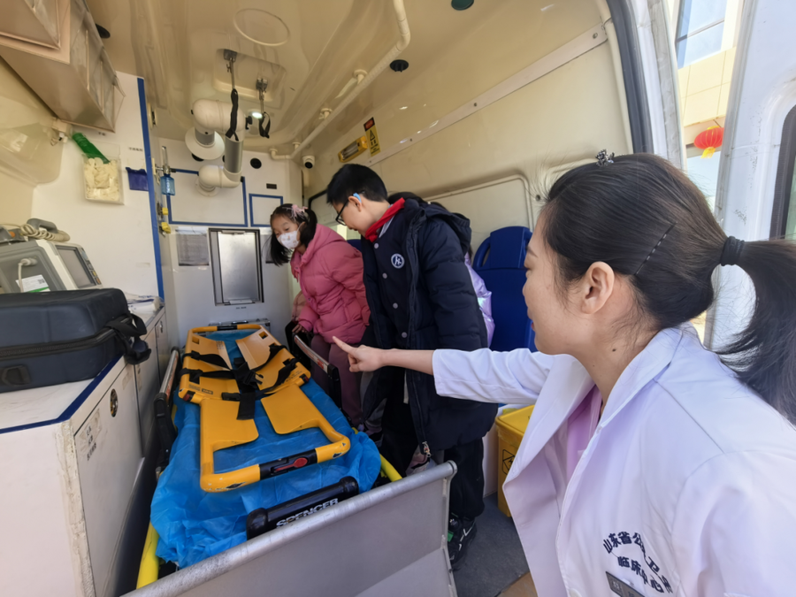 队员们在专科医师的携带下,零距离不雅察救护车的里面构造,了解医疗器械开荒的作用和使用设施。