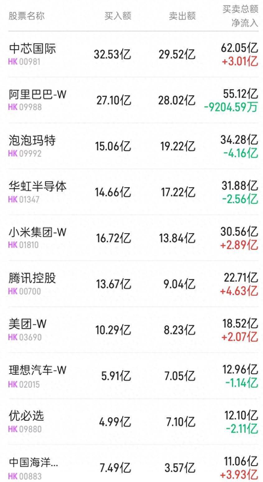 北水净买入最多的个股是好意思团-W(03690)、中芯外洋(00981)、中海油(00883)。北水净卖出最多的个股是石药集团(01093)、中芯外洋(00763)、理念念汽车-W(02015)。