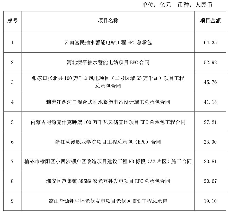 10月,中国电建新签约公约金额超5亿元的模样共34个,其中包括:云南富民抽水蓄能电站工程EPC总承包模样;河北滦平抽水蓄能电站模样;郑州航空港经济详细考研区 2023至2025年光伏建树二期模样第二标段建树模样。
